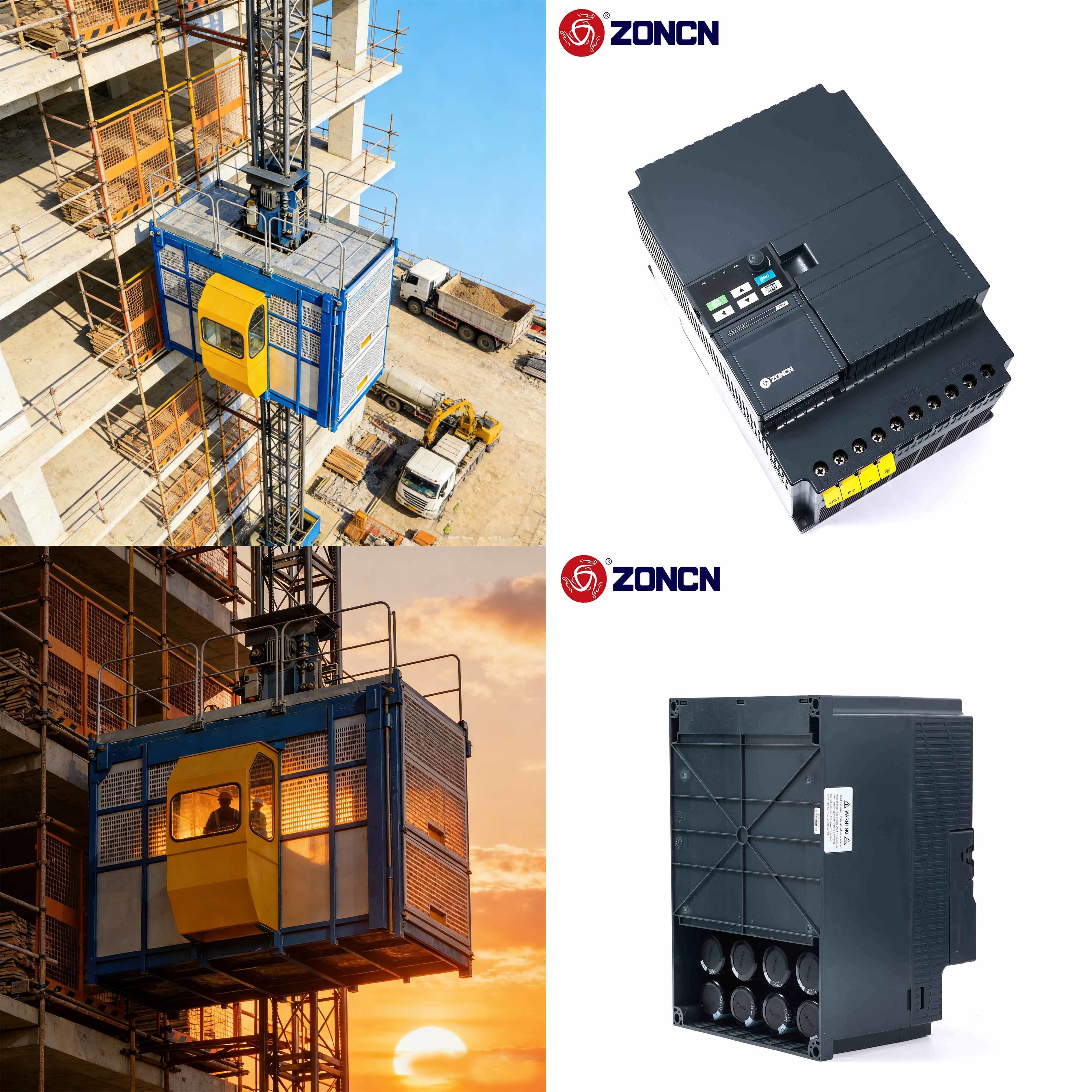 The ZONCN Z2000 Inverter provides core protection for the safe and stable operation of construction hoists. Leveraging high-performance current vector control technology, it enables smooth and seamless startup and shutdown of the hoist. Supporting both linear and S-curve acceleration/deceleration adjustment, the inverter precisely suppresses current surges during startup and inertia impacts when stopping. This not only significantly enhances passenger comfort but also reduces wear on mechanical components such as gear racks and brake discs, extending equipment service life. Meanwhile, it ensures stable cargo transportation to prevent material damage.In terms of protection functions, the inverter is equipped with multiple protection mechanisms, including overcurrent, overvoltage, overload, overheating, phase loss, and short circuit protection. Combined with fast current limiting and torque limiting control, it continuously monitors operating status and automatically avoids fault trips caused by abnormal working conditions. The "momentary power failure ride-through" function further maintains short-term equipment operation during sudden grid power outages, building a comprehensive safety barrier for construction hoists. It is fully adaptable to the complex working conditions of high-rise building construction, such as high-frequency start-stop operations and large load fluctuations.